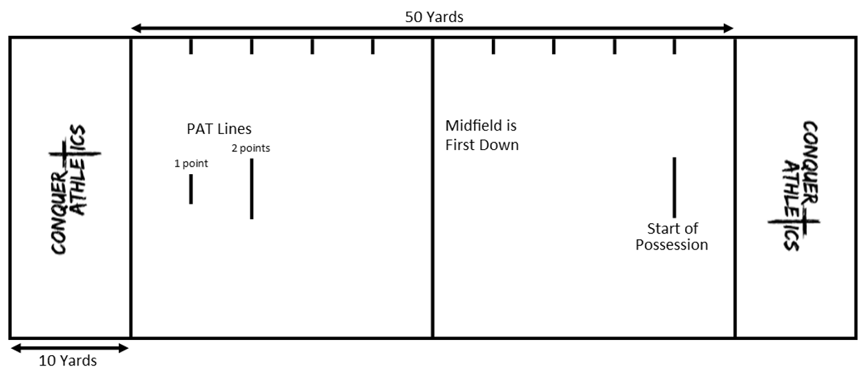 - Turnovers: If a team fails to reach midfield or the end zone within their downs, the opposing team takes possession at their own 5-yard line.